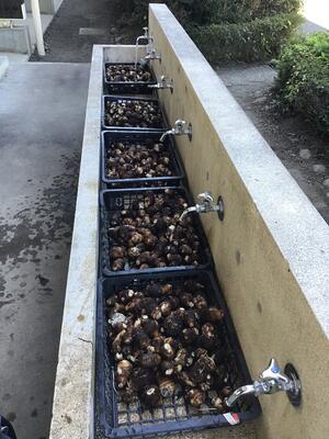収穫した子芋たち、親芋たちは、干してあるので来週になったら、家にも持ち帰ります。