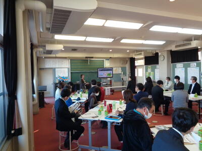今日は、先生方の現職教育の時間にも当てていたので、委員の皆様と本校の教職員が話し合いをもつことができました。また、教育実習に本校に来てくれた大学生にも参加してもらいました。