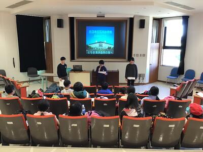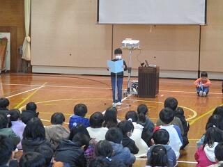 2年生が、国語の教科書に載っている「お手紙」を音読劇にして、1年生に見せてくれました。どの子も音読が上手で、「かえるくん」や「がまくん」の気持ちが伝わってきました。また、1年生も見る態度が立派で、感想をしっかり発表することができました。「お手紙」の最後の場面のように幸せな気持ちになる時間でした。