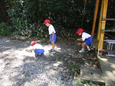 最近の1年生のマイブームは、生き物探しです。水槽片手に「動くもの」を捜し歩いています。