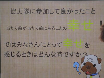 「みなさんにとって幸せを感じるときはどんなときか考えてみよう」というものです。