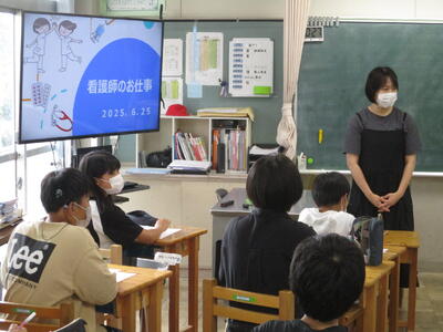 講師として、現在看護師のお仕事をなさっている昨年度6年生の保護者の方にご来校いただきました。