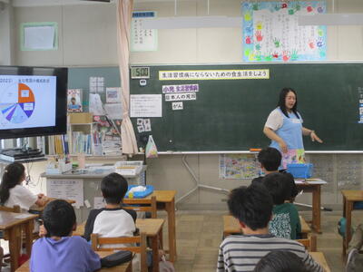 今日はその事後指導を兼ね、津田小学校の栄養教諭に食生活に関する指導を依頼しました。