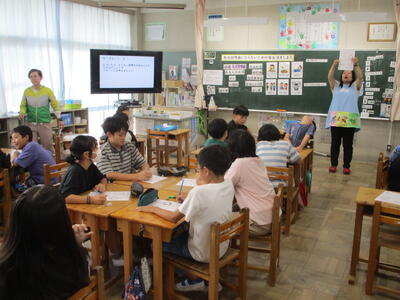 市内の新規採用教職員18名が来校し、5年生の学級活動の授業を参観しました。