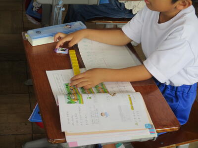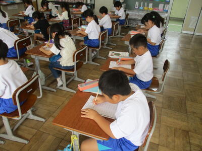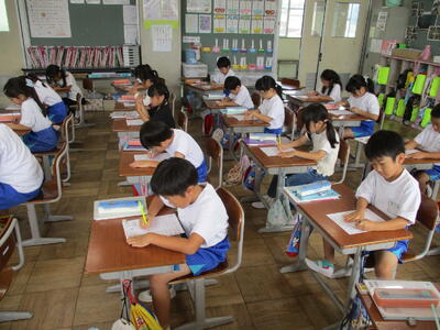 1年生たち、ノートに字を書くスピードもずいぶん速くなってきました。今年度前期の成長がよく分かる今日の学習の様子でした。