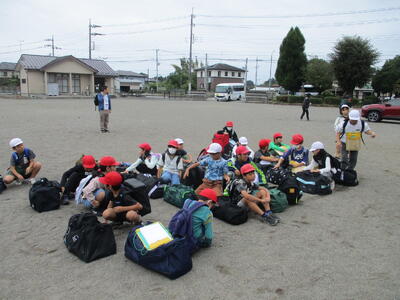 あいにくの曇り空ですが、板荷の自然体験交流センターへ元気に出発していきました。楽しい3日間となるようにみんなで協力してくださいね。