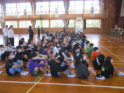 今日の業間時に、全校生の前で合唱を披露してくれました。