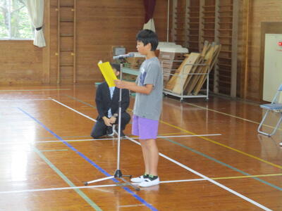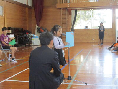 初めの会の後、1年生から歌と音読のプレゼントをしました。