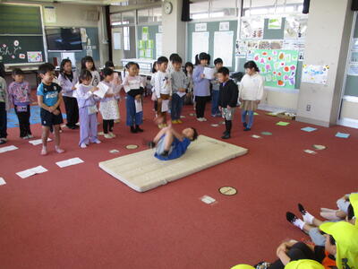 音読「おむすびころりん」はでんぐり返しのアクションも入れて