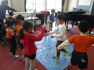 なーさりぃとの交流会です。なーさりぃの年長児が来校しました。