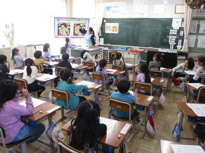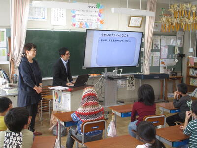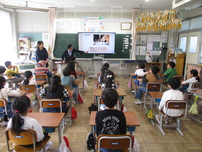 「まちたんけん」で伺うことができなかった永田牧場様が、2年生のために特別授業をしてくださいました。