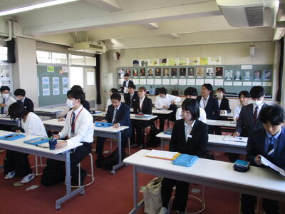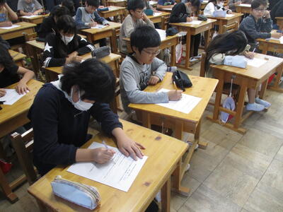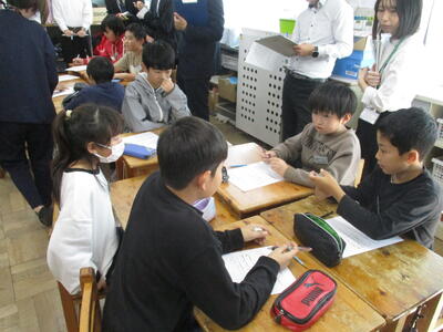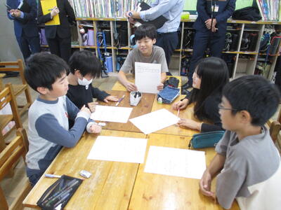 市内の新規採用教職員18名が来校し、5年生の学級活動の授業を参観しました。