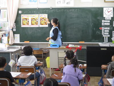 津田小学校の栄養教諭に来校いただき、「食に関する指導」を実施しました。
