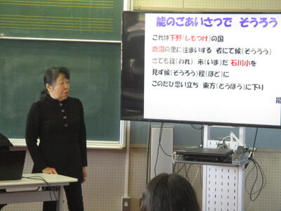 今日は、能・狂言についてご指導くださる講師の方に来校いただきました。