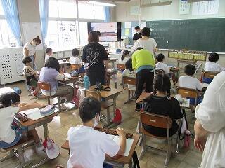 4年生が、そろばんで小数のたし算とひき算をしました。7名の学習支援ボランティアの方がみてくれたので、そろばんの使い方がよく分かったようです。みんなよくできていましたが、あらためて電卓の便利さを感じたのが本音だったようです!?