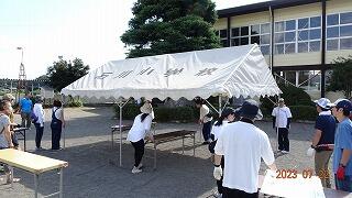 夏祭りを予定どおり実施します。早朝から夏祭り実行委員の皆さんを中心に準備を進めています。今夜のお祭りが楽しみです。