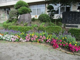 石川グリーンクラブの皆さんにご協力いただいて植えた花々がきれいに咲き続けています。毎朝、美化委員会が水やりをしたり、昇降口をきれいに掃除したりしてくれているので、いつも気持ちのいい一日のスタートがきれています。