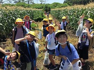 3年生が、総合的な学習の時間に、ニラづくりとトウモロコシづくりの様子を見学させていただきました。暑い中熱心に仕事をしていることに感心するとともに、そんな中、時間を割いて説明してくださったことに、子どもたちも感謝の気持ちをもったようです。ありがとうございました。