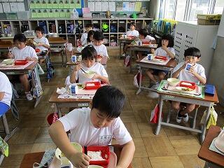 今日の給食は「旬のお魚ランチ」でした。「秋刀魚の梅煮」の味付けが絶品でした。昔は飽きるほど食べられたサンマも、近年は値段が高くなってめったに食べられなくなったので、味わいながらいただきました。食べ終わった後、2年生に感想を聞いたら、「ほねまでやわらかく煮てあり、あまいたれがかかっていて、とてもおいしかった。」と感想を言ってくれました。魚が苦手な子も、おいしく食べられたと思います。