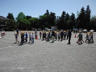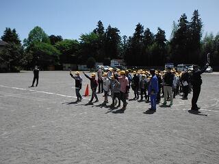 3校時に交通安全教室を開きました。鹿沼警察署、鹿沼市役所、トラック協会の皆さんの協力で、大型トラックの内輪差による巻き込み事故の実験を行いました。実際に見ることによって、交差点の危険性を体感することができました。また、その後の横断の仕方の練習にも生かされました。ぜひ自分の身は自分で守れる子どもに育ってほしいと思います。