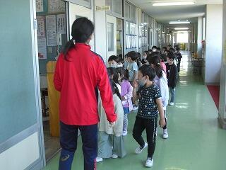 昨日に続いて1年生が学校探検で校舎の中を回りました。静かに歩いてきたので、1年生が校長室の前を通ったのに気付きませんでした。学校には、教室以外にもいろいろな教室があることを知って驚いたと思います。理科室や家庭科室を使うのはまだ先のことですが、理科や家庭科の授業を楽しみにしていてくださいね。