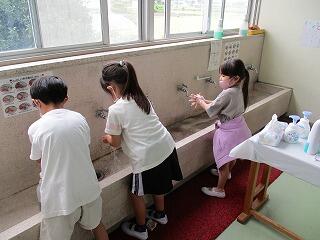 保護者の皆様には下校時刻や行事の変更等ご迷惑をおかけしていますが、おかげさまで大きな混乱もなく、無事1週間を過ごすことができました。今日は1年生が、あらためて手の洗い方の勉強をしました。ブラックライトを当てて残った汚れを見つけると、一生懸命洗いなおしている姿がほほえましかったです。土日も感染予防に気をつけて、月曜日にまた元気に登校してきてほしいと思います。