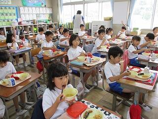 今日の給食は「旬のお魚ランチ」でした。「秋刀魚の梅煮」の味付けが絶品でした。昔は飽きるほど食べられたサンマも、近年は値段が高くなってめったに食べられなくなったので、味わいながらいただきました。食べ終わった後、2年生に感想を聞いたら、「ほねまでやわらかく煮てあり、あまいたれがかかっていて、とてもおいしかった。」と感想を言ってくれました。魚が苦手な子も、おいしく食べられたと思います。