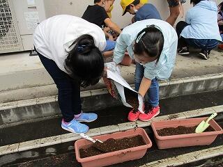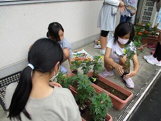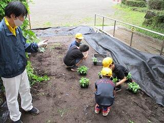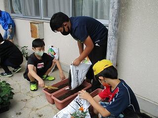 とちぎ国体鹿沼市実行委員会の依頼を受けて、4年生がサルビア、マリーゴールド、ニチニチソウをプランターに植えました。このプランターは、鹿沼総合体育館に置かれ、来月行われるとちぎ国体リハーサル大会で選手をお迎えするそうです。早く新型コロナウイルス感染症が収束して、とちぎ国体が盛り上がることを期待しています。