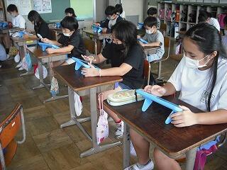 ICT活用アドバイザーの永山先生に、1年生は生活科でとった虫の写真をオクリンクで提出する方法、3年生は絵を動かすプログラミング学習、4年生はチームズでコミュニケーションをする方法を教えてもらいました。放課後は、職員がオンライン学習の進め方について研修をしました。オンライン学習は有効ですが、新型コロナウイルス感染症がこれ以上拡大しないこと願っています。