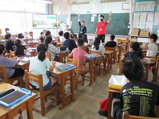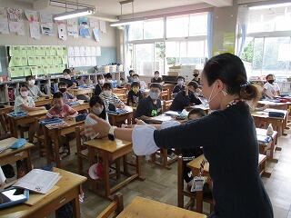 2学期も引き続きシェラリン先生が外国語の学習を支援してくれています。緊急事態宣言が発令中で外国語の学習にも制限はありますが、シェラリン先生が相変わらず「I'm Happy!」と元気なので、みんな楽しく英語を学んでいます。2校時に5年教室をのぞいたら、英語で「身近な人を紹介する」学習に取り組んでいました。