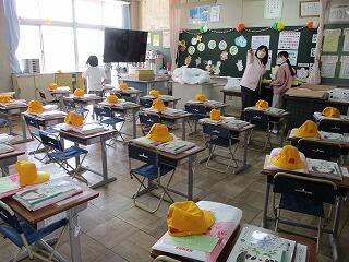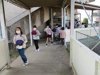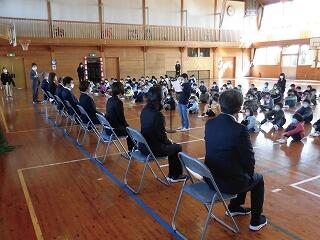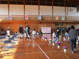 2~6年生が明日の入学式の準備をしました。新型コロナウイルス感染症拡大防止のため、在校生は式に参加しませんが、在校生が心をこめて準備した式場で入学式を行います。明日の入学式をとても楽しみにしています。