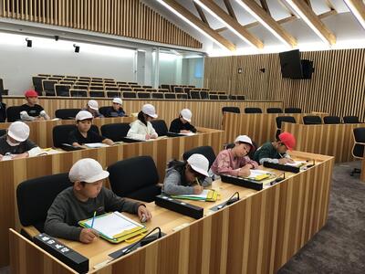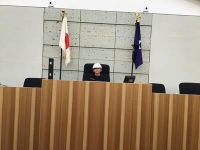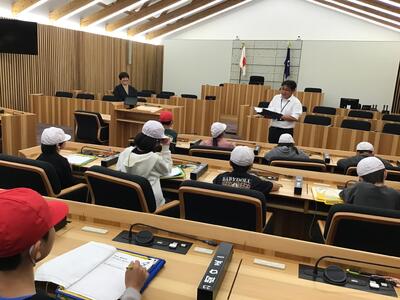 市役所では、市議会議場を見学し、議長席にも座らせていただきました。