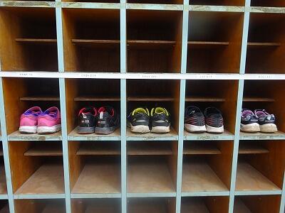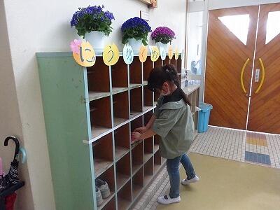 登校した1年生のくつのかかとを揃えていました。