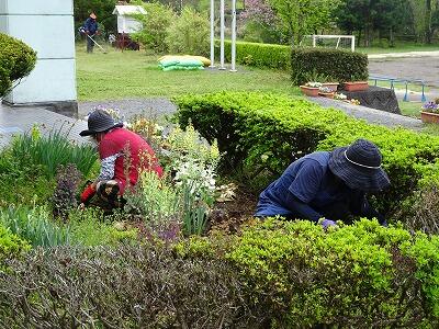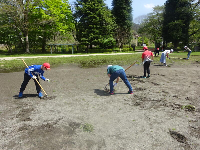 4月23日には、学校支援ボランティア「一洗舎」の皆様に、校庭の草刈りや花壇の整備をしていただきました。