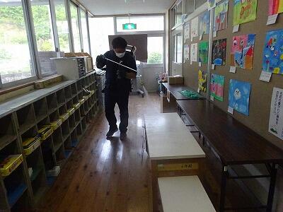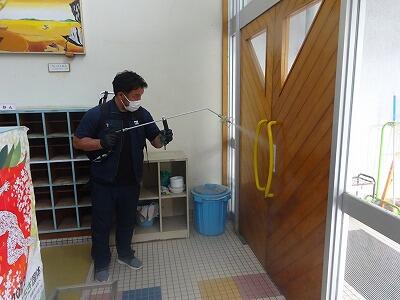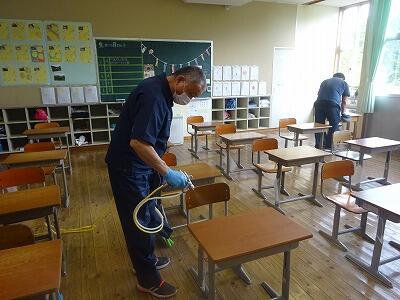 今回、昇降口や玄関、各教室の机・いす、水道、トイレ、体育館、共有する備品(体育の用具や本)等をコーティングしました。今後も、手洗い・うがい、手指消毒等、基本的な感染予防対策は、継続実施していきますが、教職員が行っていた毎日の消毒は不要になります。