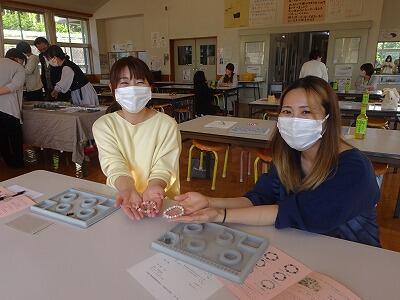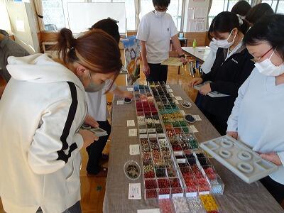 板荷小・中学校合同で、家庭教育学級の開級式と研修会を実施しました。第1回研修会は、「大地の力を秘めたパワーストーンの魅力」というテーマで、講師の若松様からご講話をいただき、そのあと、パワーストーンのブレスレットを作りました