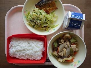 サバのスタミナ焼き、キャベツの塩昆布和え、筑前煮でした。