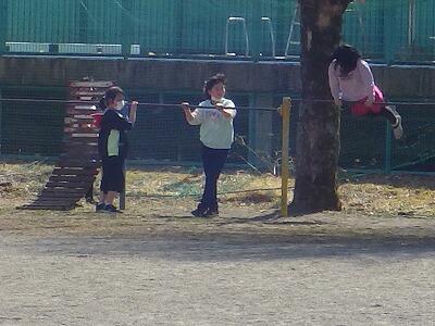 フリータイムや昼休みには児童は暖かい校庭で気持ちよく「汗」を流していました。