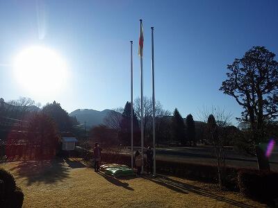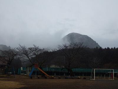学校周囲の山々からは水蒸気が沸き立っていました。