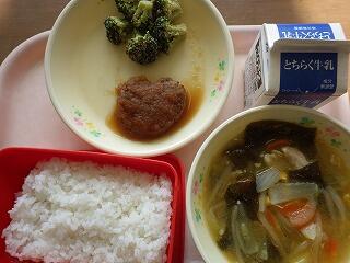 給食は「根菜のごま汁」「鶏肉のレモンソースがけ」「ブロッコリーサラダ」でした。