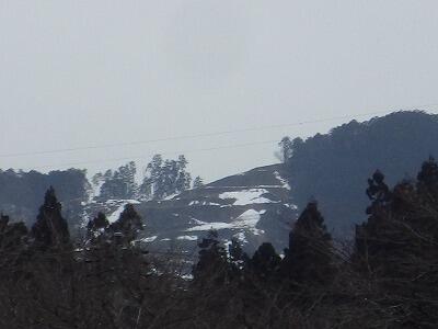 学校から見える、採石場の山(北斜面)には、まだまだ雪が残っています。