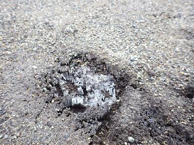 校庭の足跡の「くぼみ」には「霜柱」がしっかりと立っていました。