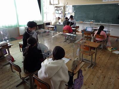 帰りの会終了後、教室内の物品を廊下に出し、児童は下校しました。