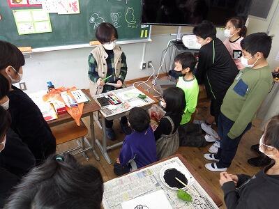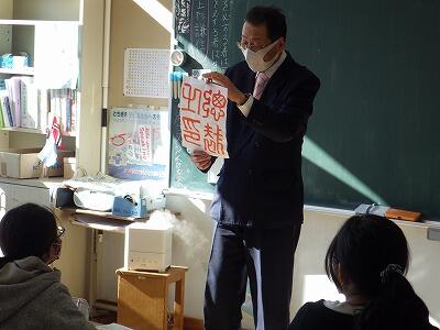 6年生が「書写」の時間に「特別講師」をお迎えしました。
