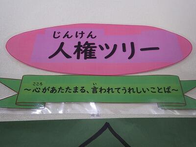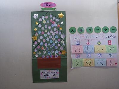 職員室前の「人権コーナー」には「人権の木」が完成しました。