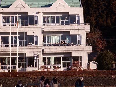 1年生、2年生、3年生がベランダから「いってらっしゃーい」のエールを送ってくれました。