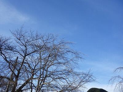 青空を見上げるとソメイヨシノの梢に「三日月の少し前」が残っていました。