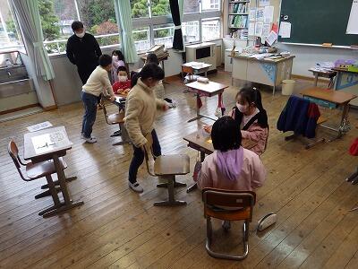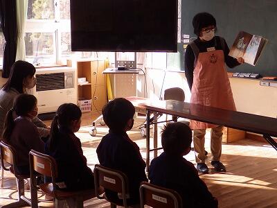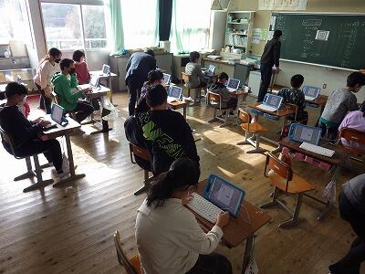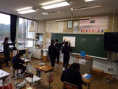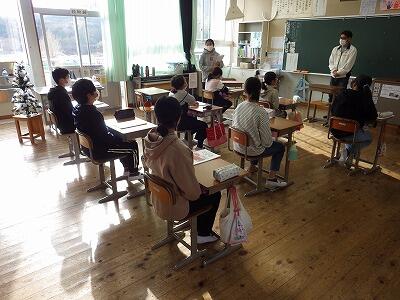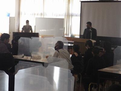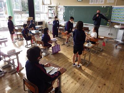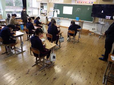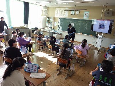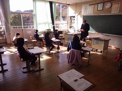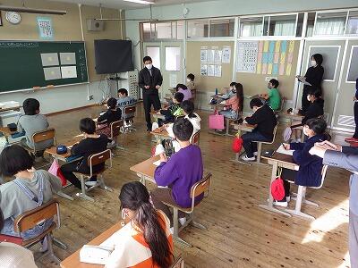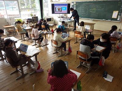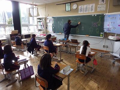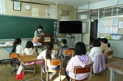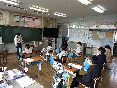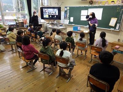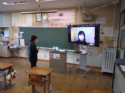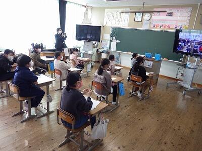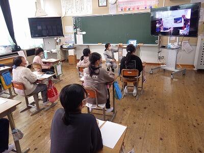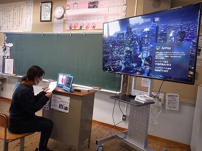 1,2年生の教室から、担当教諭が「リモート」中継で授業を実施しました。