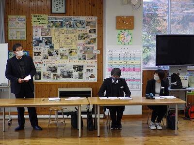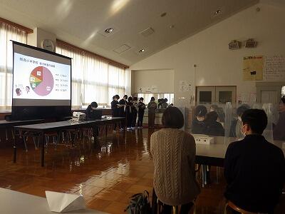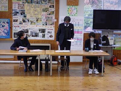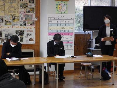 板荷中学校生徒会保健給食委員会と板荷小学校健康委員会代表から説明がありました。