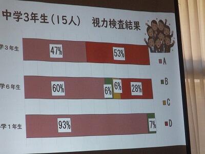 最初に「眼科健診結果」と「小学4年生~中学3年生のアンケート」報告がありました。